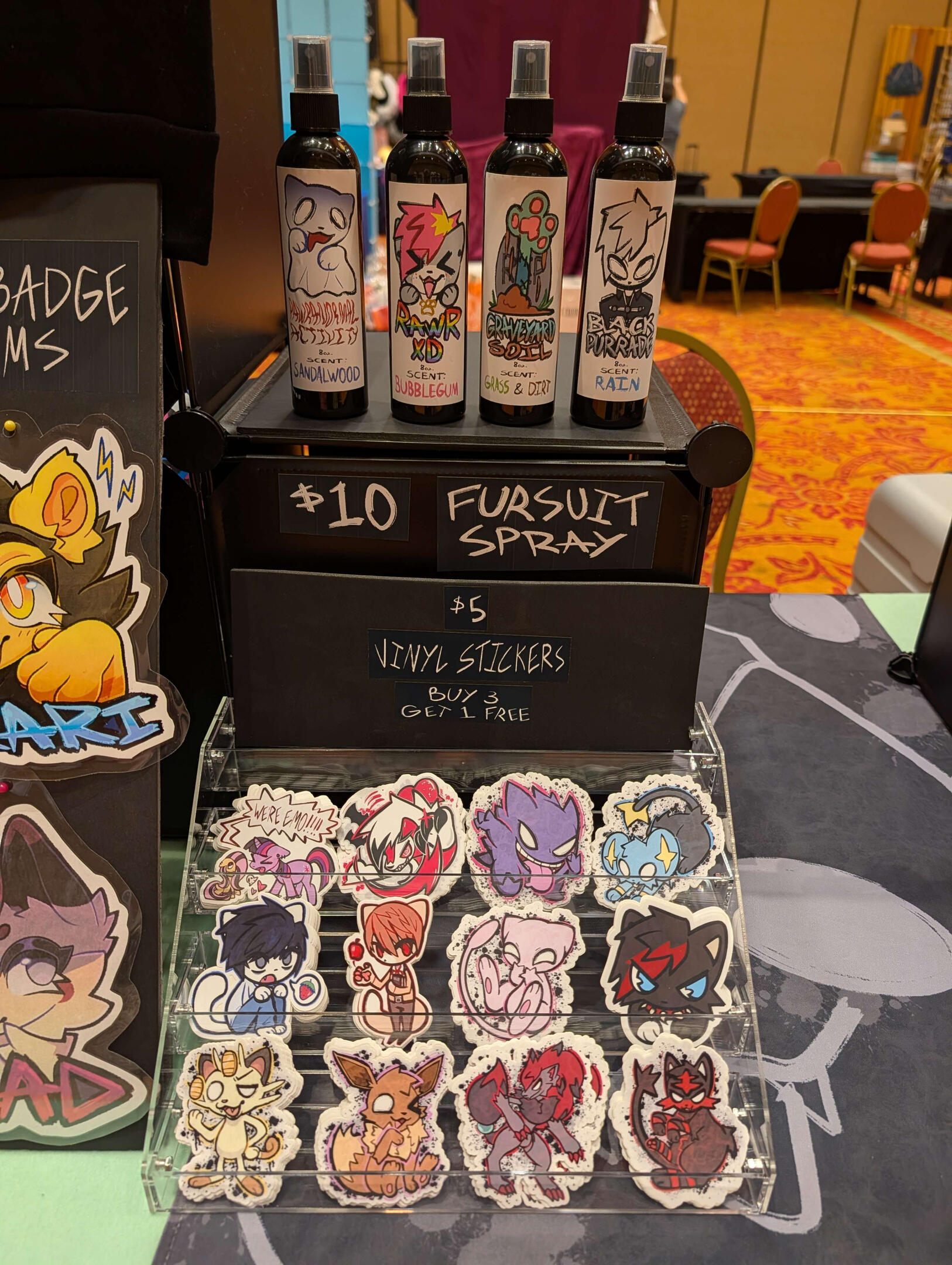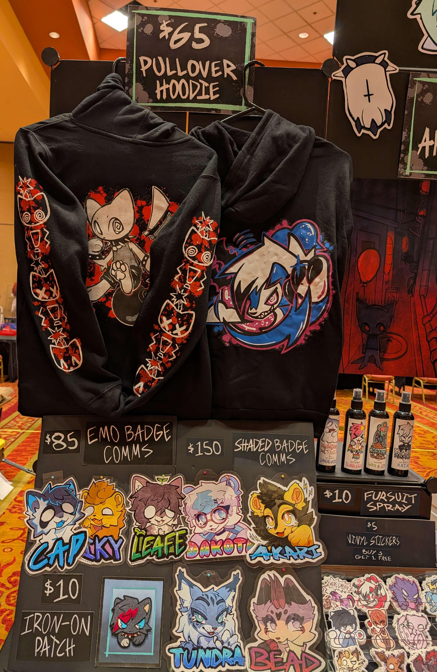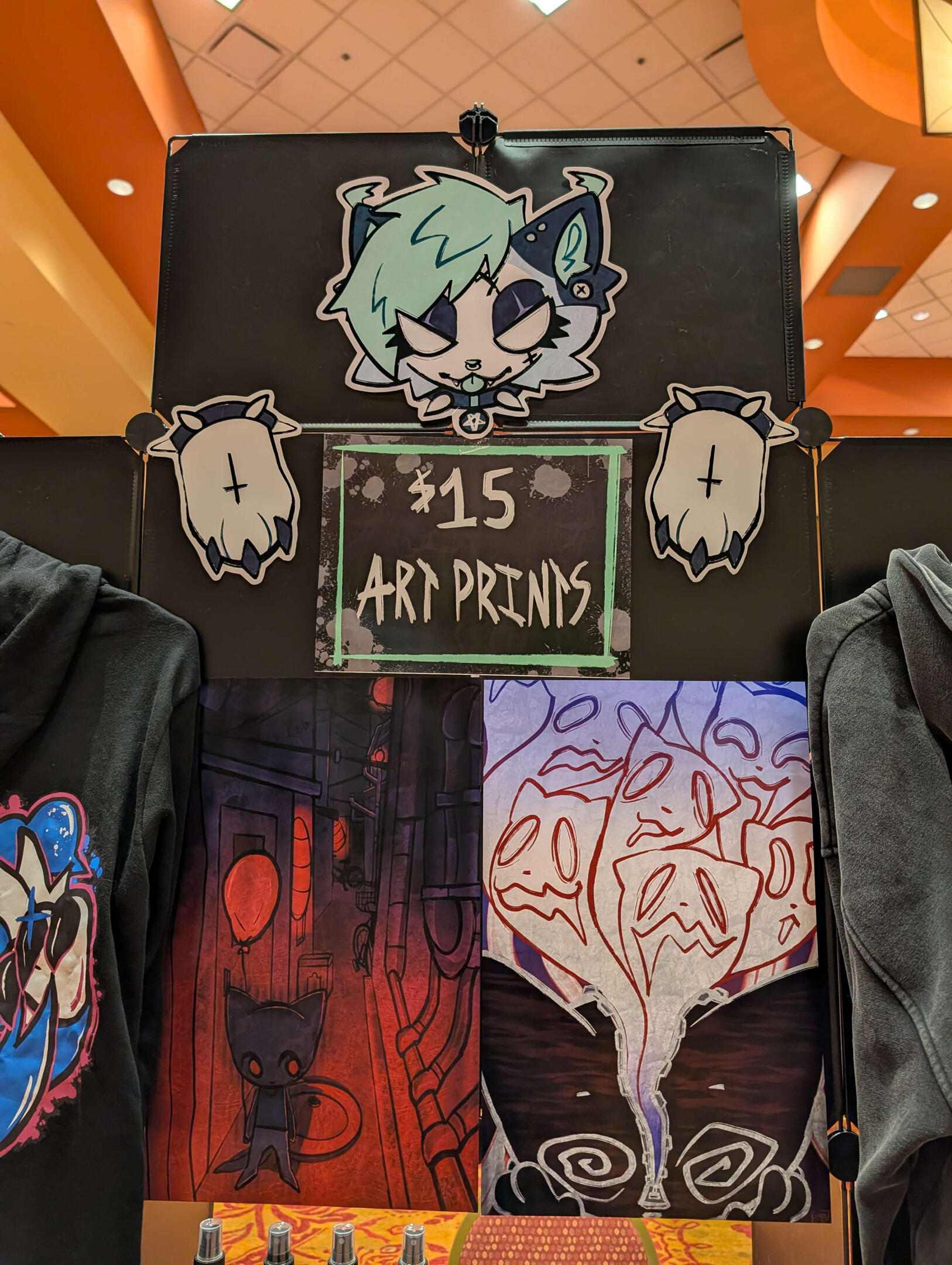 Hi, I'm GHOULCAT !! I'm a transmasc digital artist from Oklahoma who's been in the furry fandom since 2016, and started vending at conventions as of 2025!I <3 cutesy horror and specialize in bringing an emo/early internet aesthetic to the things I create, as a kid who grew up with unrestricted internet access (it shows)My first time vending was at AnthroExpo 2025 in the Artist Alley, and since then, I've upgraded to a full Dealer's Den setup! As I continue to vend at more conventions and expand my display and range of products, I will keep this page updated :3